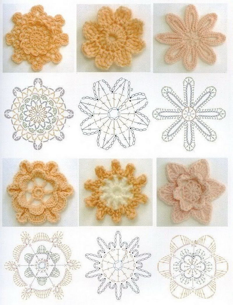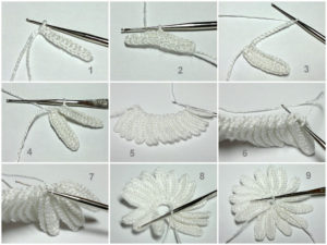 Предлагаме ви няколко оригинални схеми за изработване на декоративни цветя с помощта на шевици и плетене на една кука.