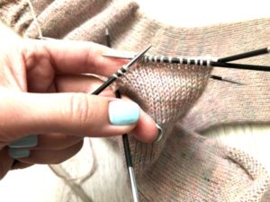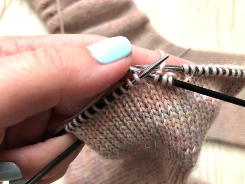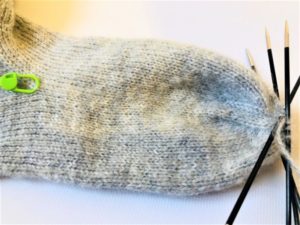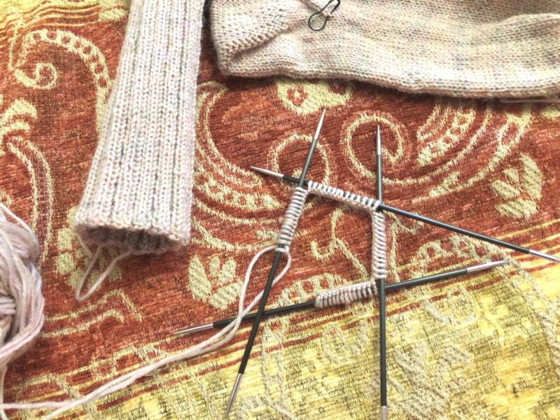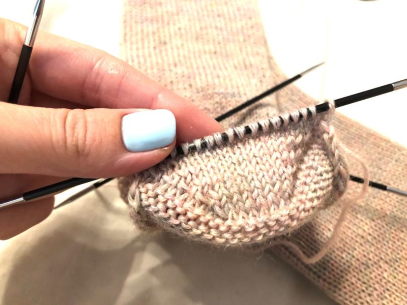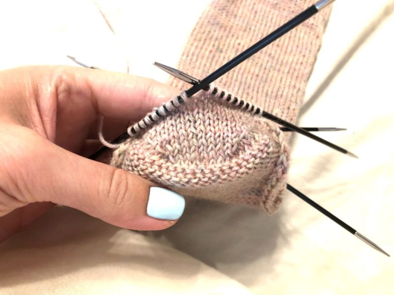 - По-трудно е да се изплетат първите редове с четвъртата игла, без да се включва петата. След това е добре да разпределите бримките равномерно и да продължите да плетете, като използвате всички спици.