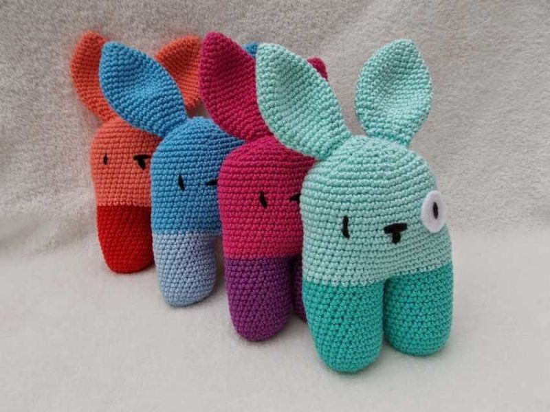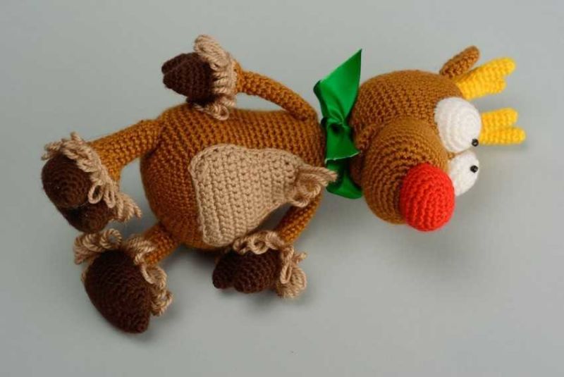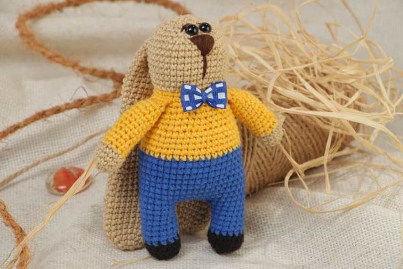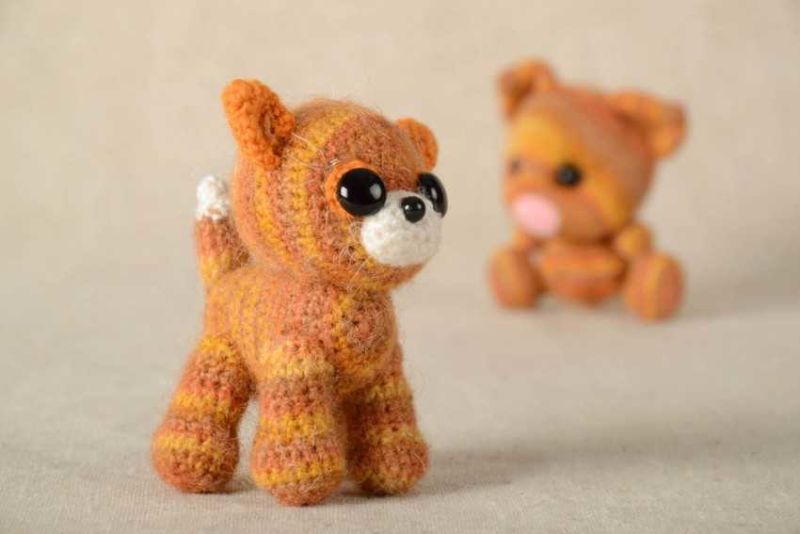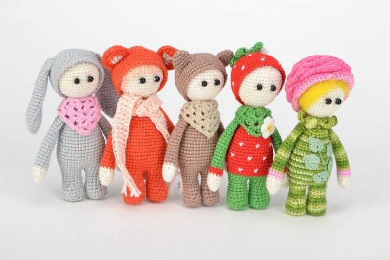 Плетените на една кука играчки се различават по това, че са по-плътно изплетени, тъй като техниката се основава на това, че редовете се правят по няколко начина. За да можете да плетете играчка, трябва да имате умения в плетенето на една кука.