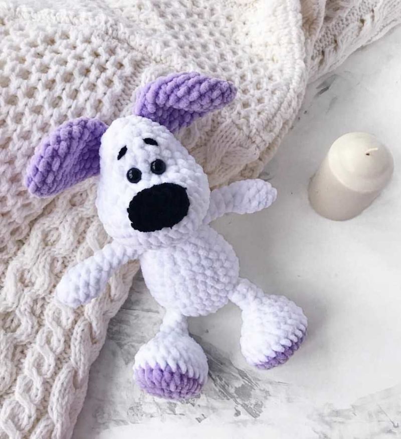 Тази прежда е много мека и е подходяща за плетене на различни играчки. Ще изплетем кученце в него: