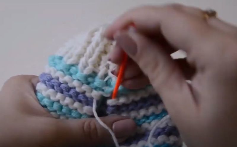 - Продължете да плетете 5 см с бежова или бяла прежда.