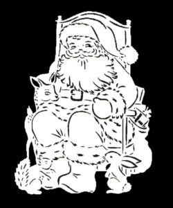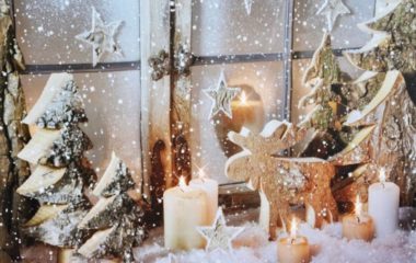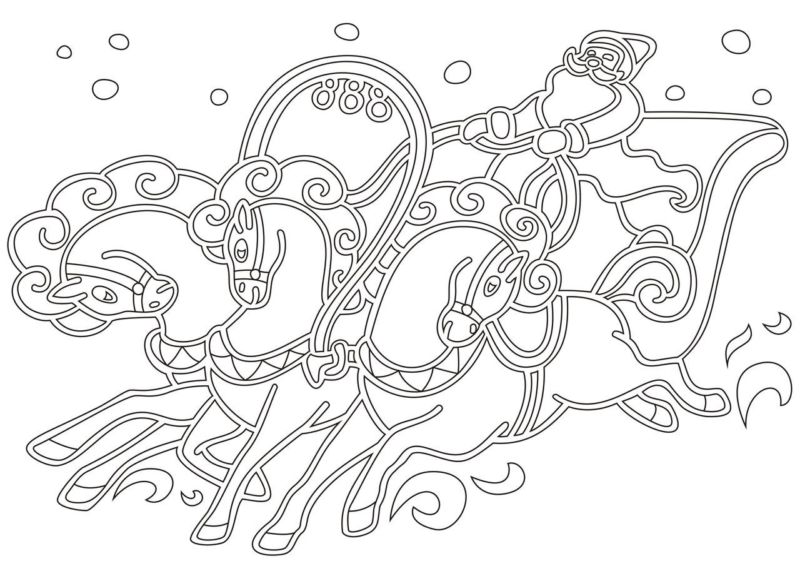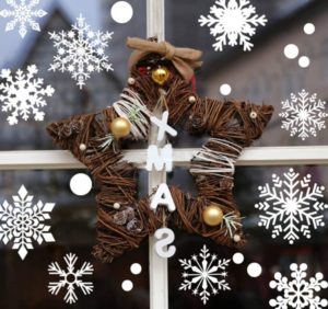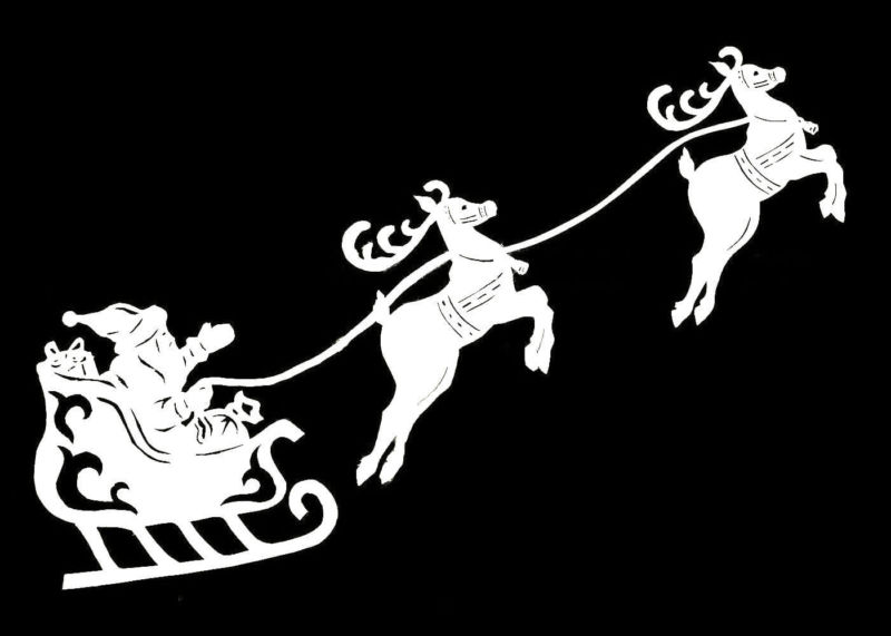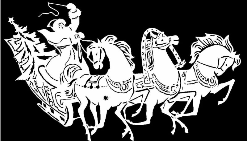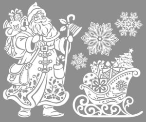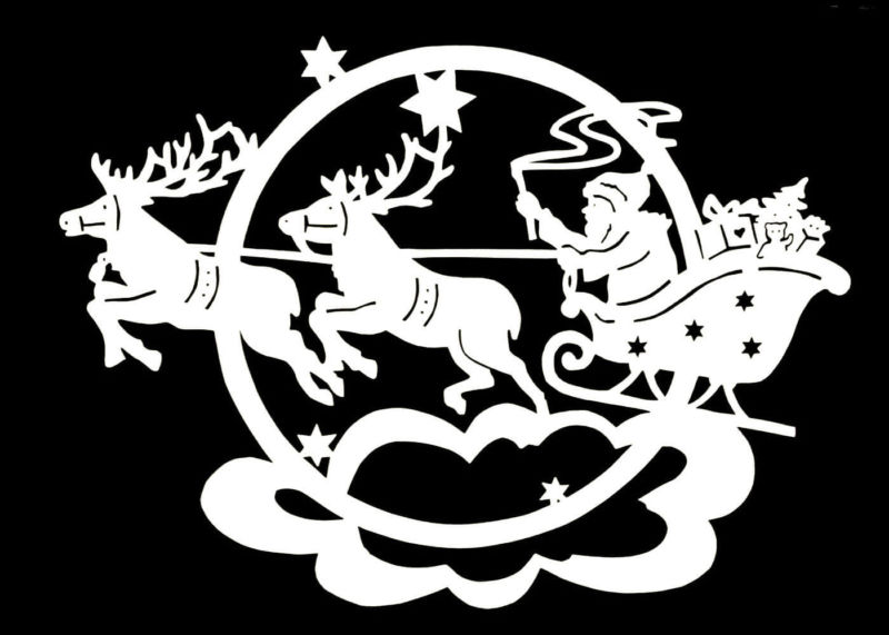 Често можете да видите и изображение на Дядо Коледа, седнал на шейна, а по пътя му са вързани северни елени, като украса на прозорците.