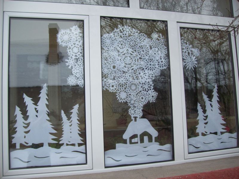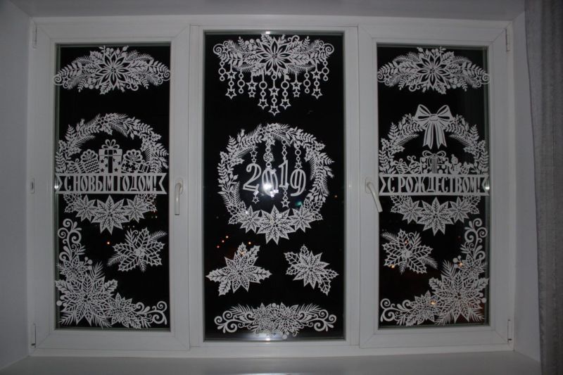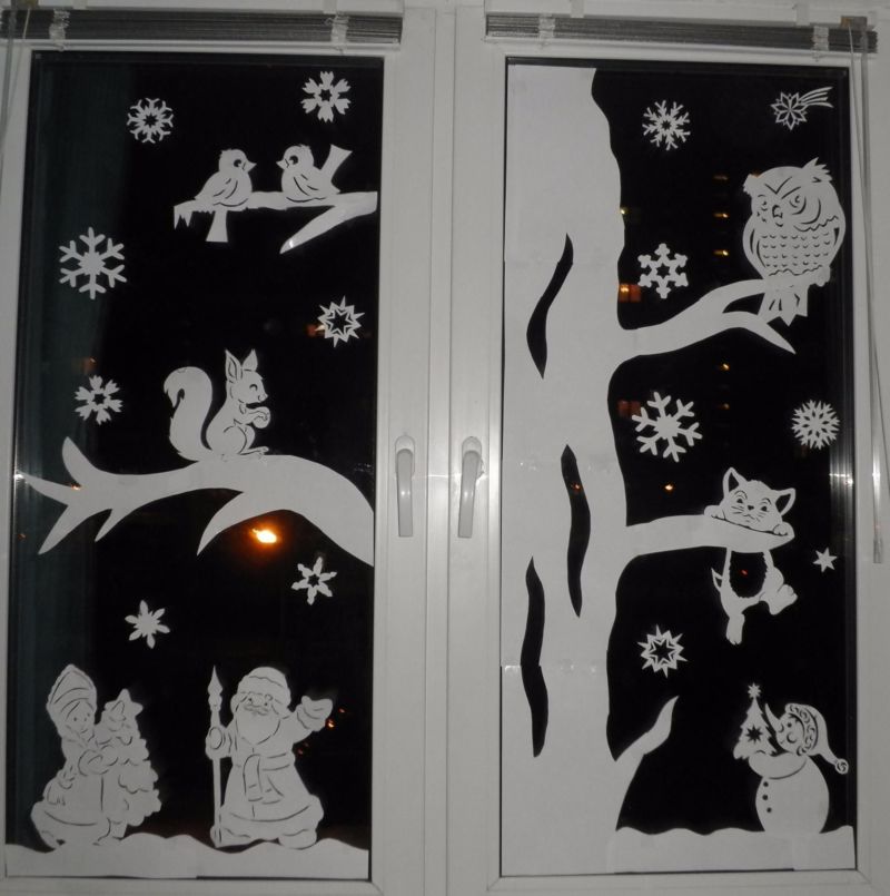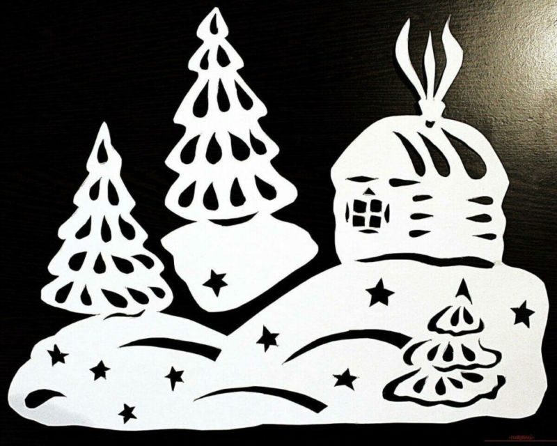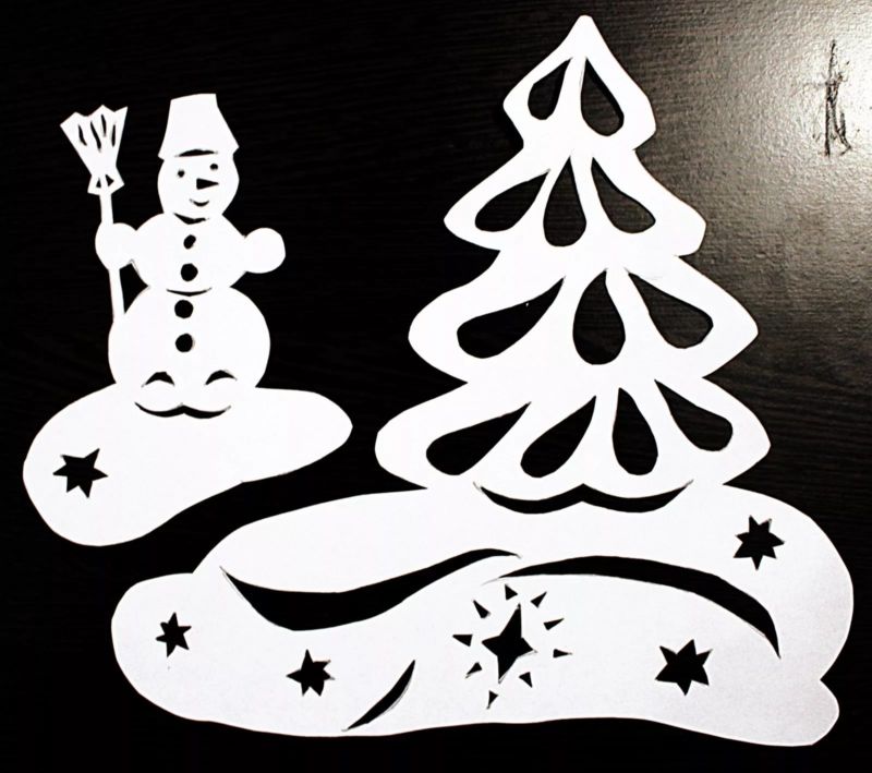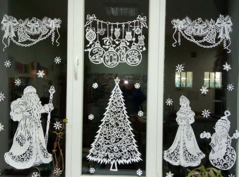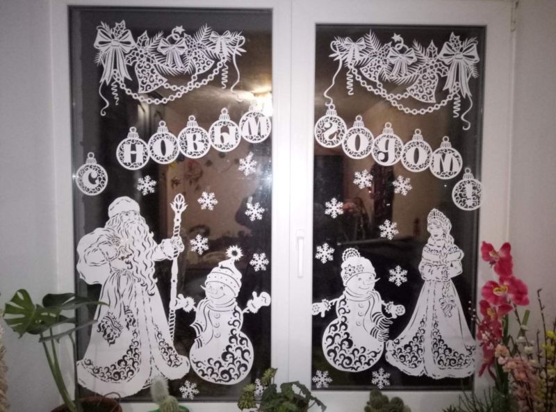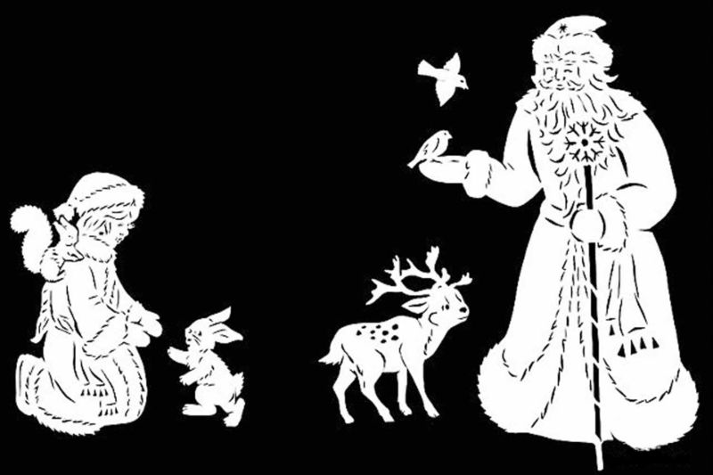 Изрезките от хартия за прозорци в навечерието на Нова година могат да бъдат направени във всякакви варианти. Това могат да бъдат както ажурни модели с елегантни извивки, така и герои от коледни приказки, хармонично съчетани и взаимодействащи помежду си.