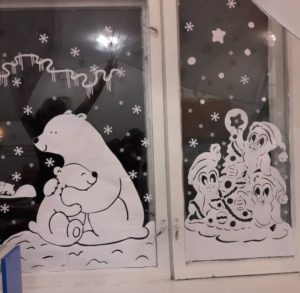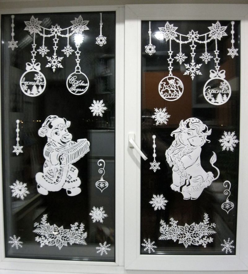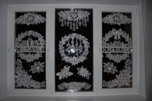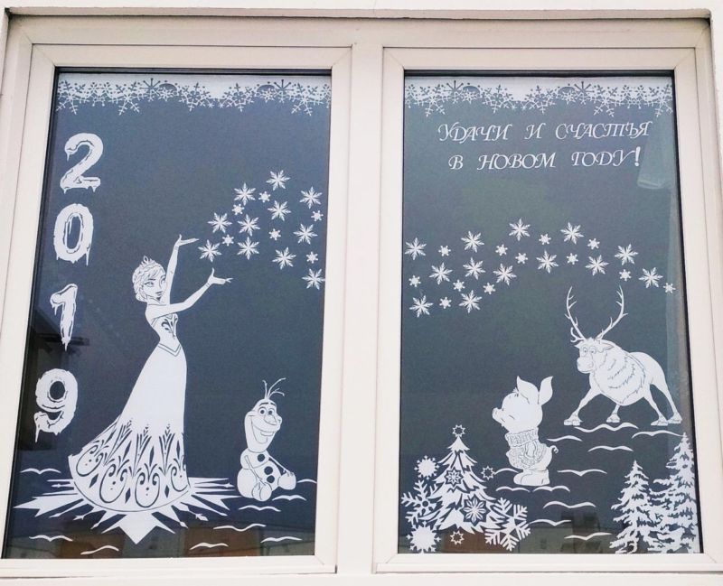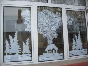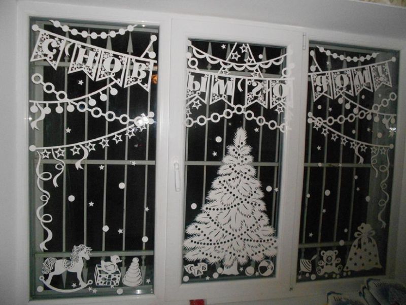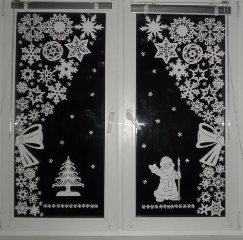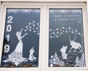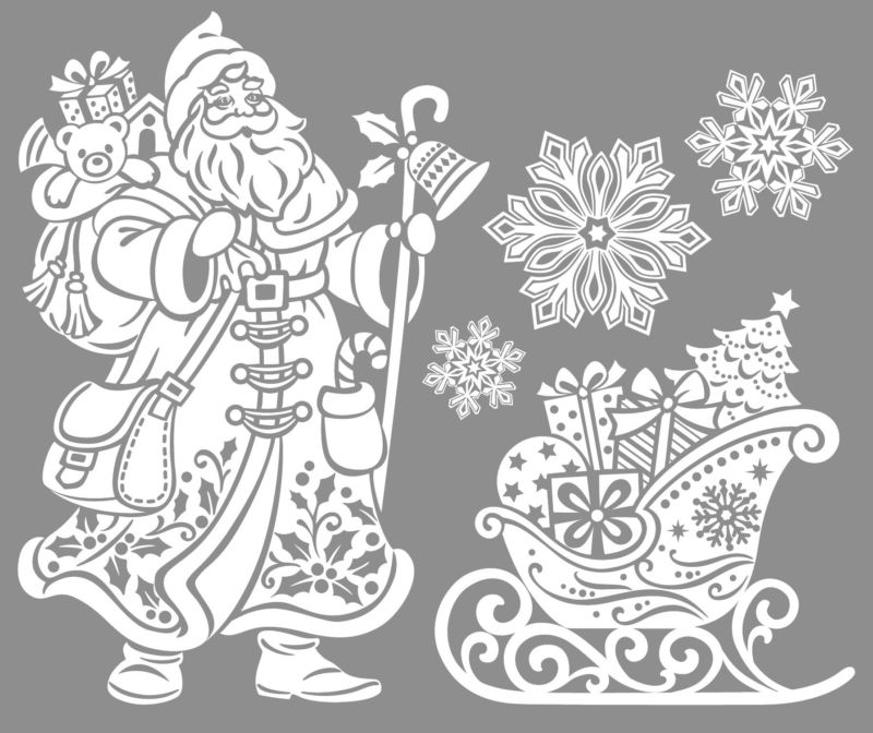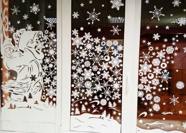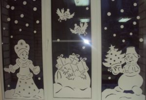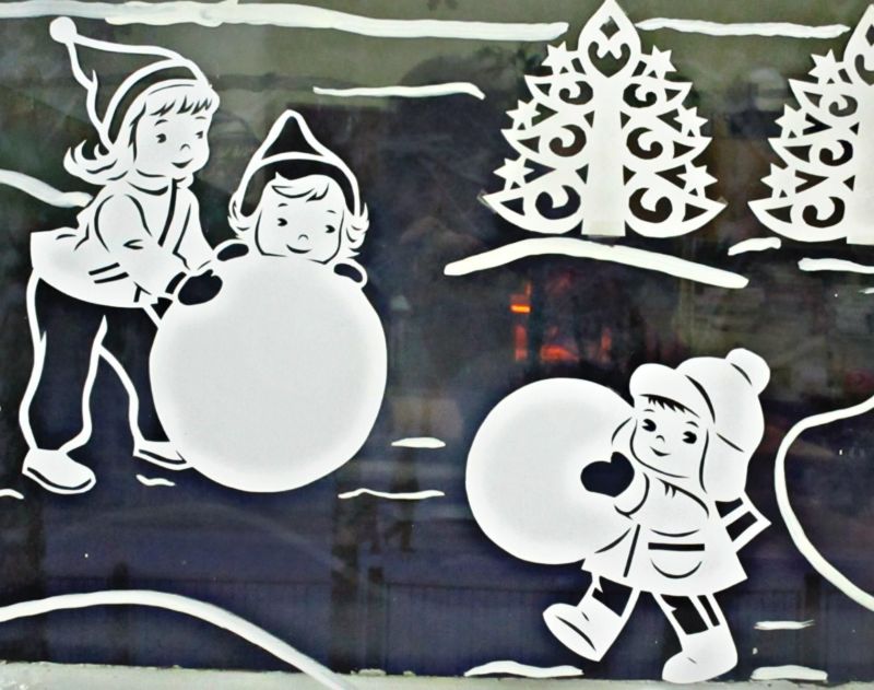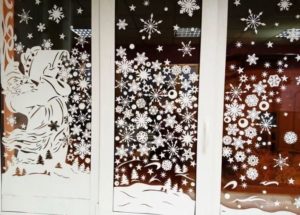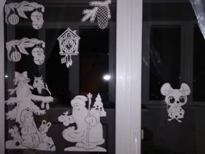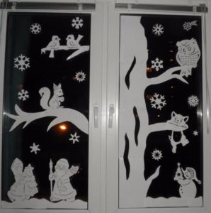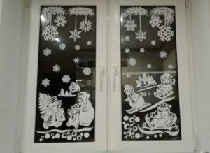 Шаблоните върху стъкло при всеки поглед върху прозореца веднага предизвикват празнично настроение, особено ако са цяла композиция от много силуети и с интересен сюжет.