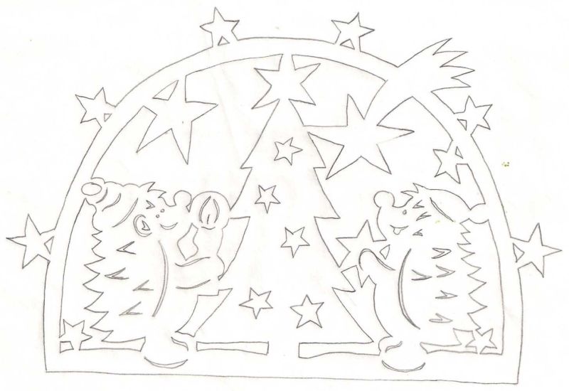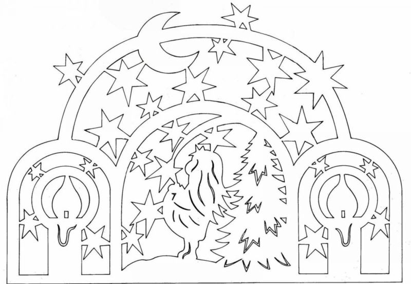 Ако имате умения за рисуване или просто сте добри в рисуването, можете да се опитате сами да нарисувате шаблона. Шаблонът е изрязан по контур, който създава обем и основен силует, когато се постави върху прозореца.