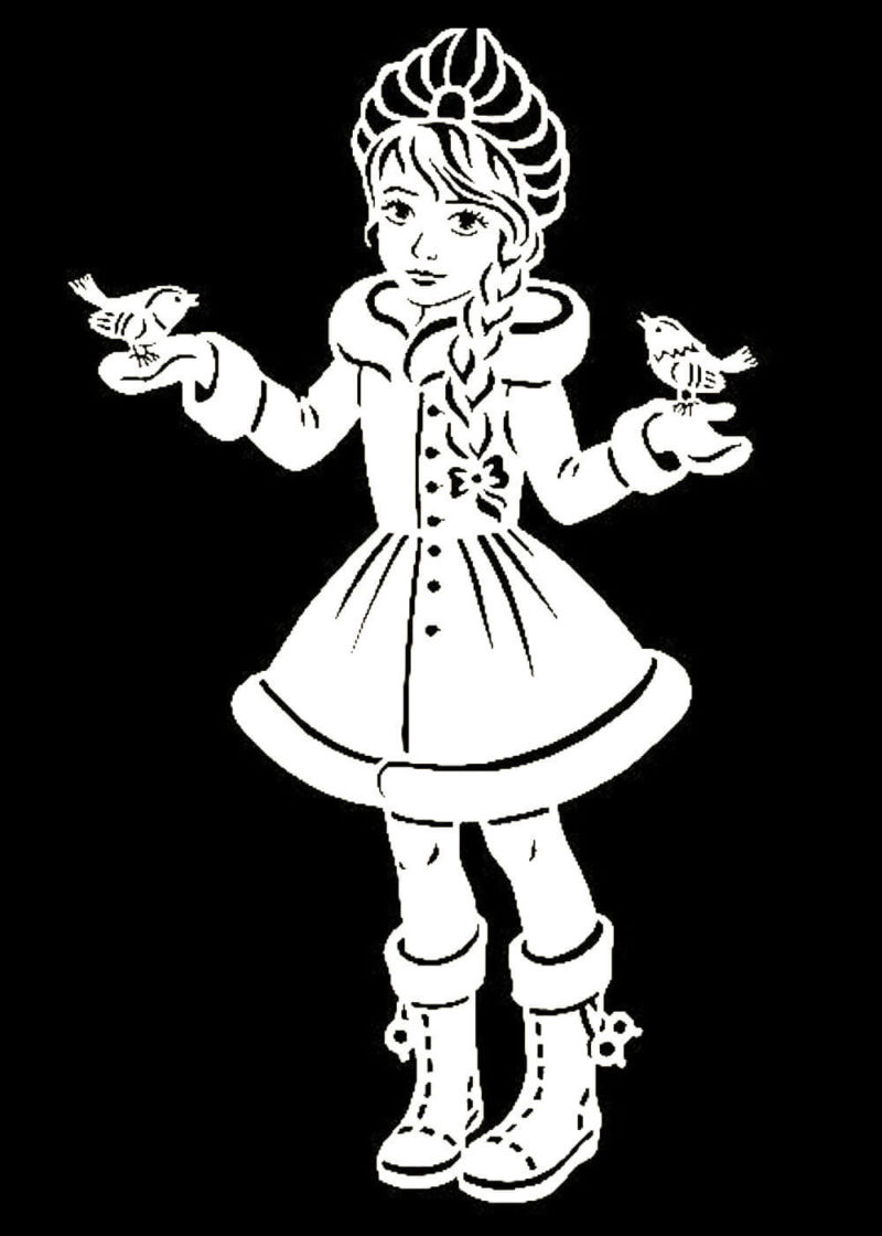 Ако умеете да рисувате хора и човешки силуети, можете да създадете свой шаблон за снежна девойка.