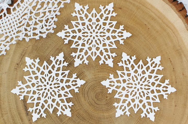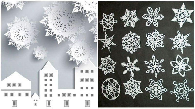 За да се получи красива снежинка, хартията трябва да се сгъне няколко пъти в триъгълна форма, да се изрежат краищата, така че да изглеждат изящно, и да се премине към централната част, която, когато се сгъне, е в остър ъгъл.