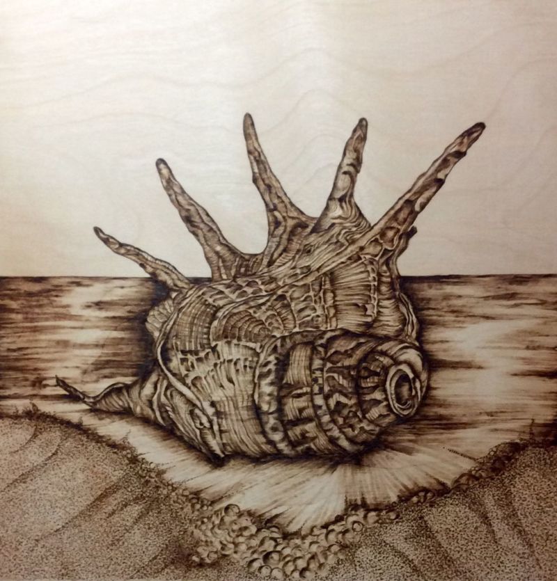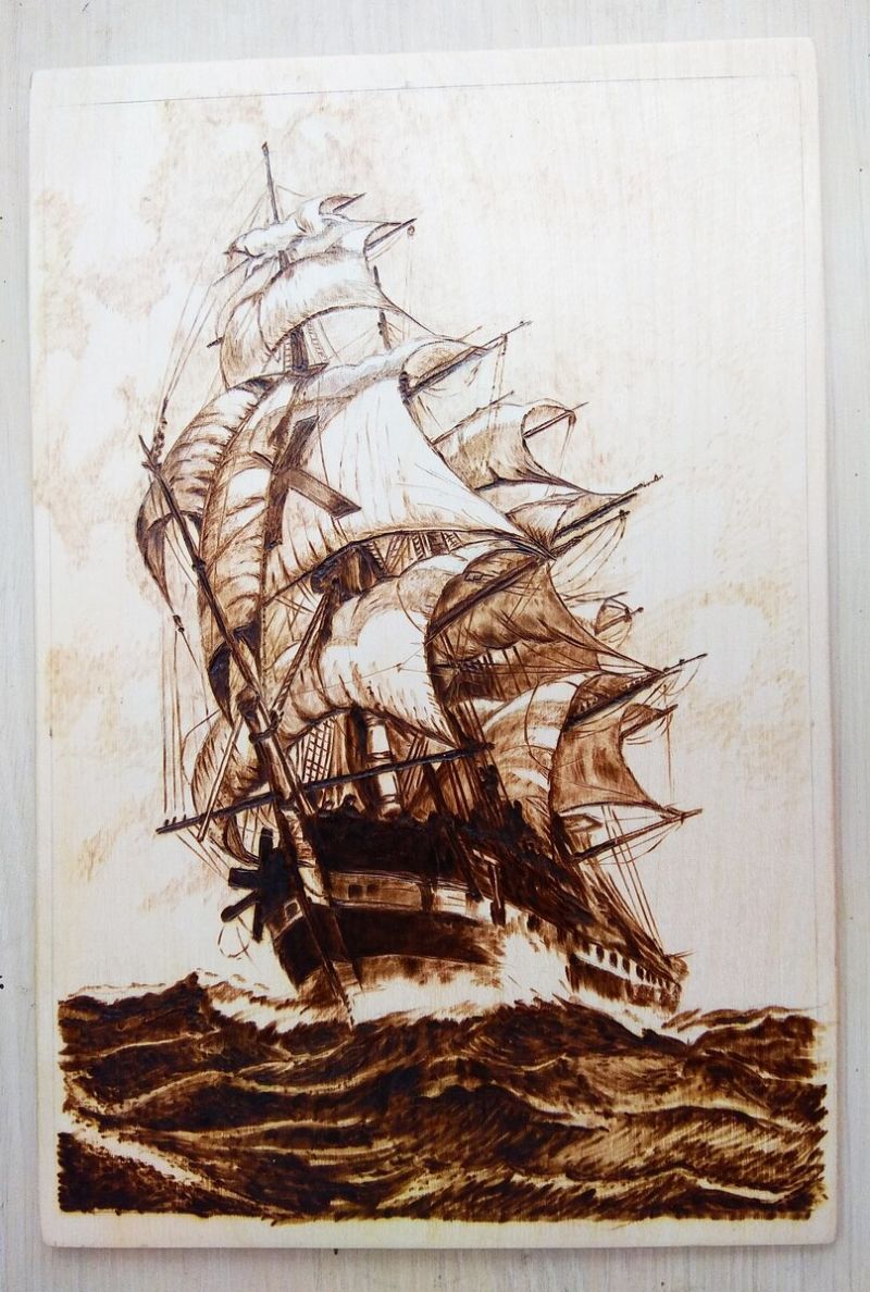 - Процесът на изгаряне. По-добре е да се движите от ръба към центъра, от контурите към проследяване на вътрешните детайли и след това към защриховането.