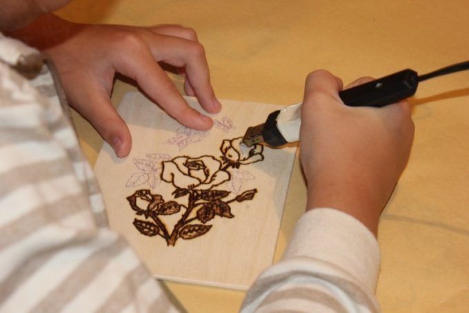 На всеки училищен панаир имаше картини, подложки и дъски за рязане, изработени с тази техника.