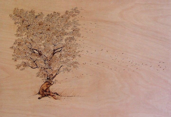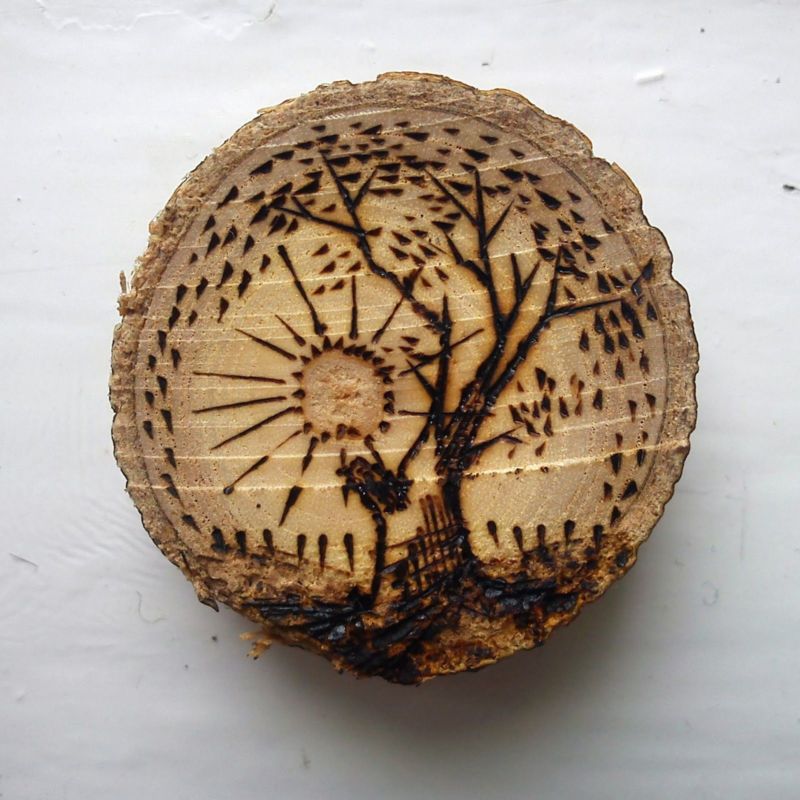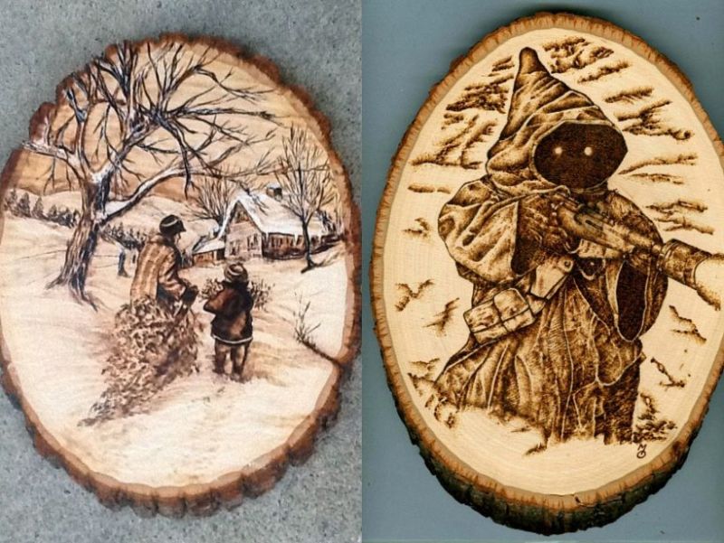 Тези, които умеят да рисуват, могат да измислят история и да я нарисуват директно върху дървото, като използват минимален брой линии с молив.