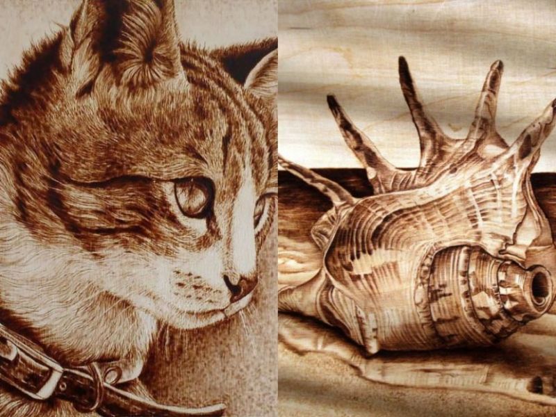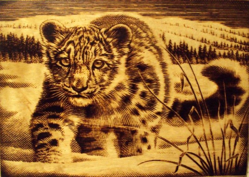 Природата е високо оценена от опитните пирографи: изобразяват диви животни, птици на фона на естествената им среда и домашни любимци.