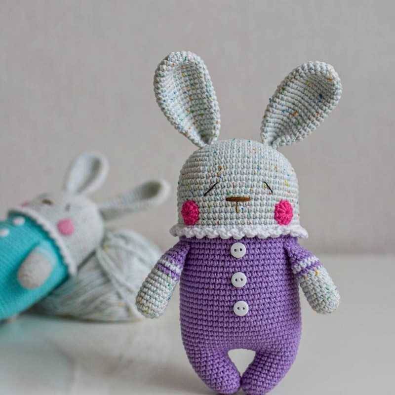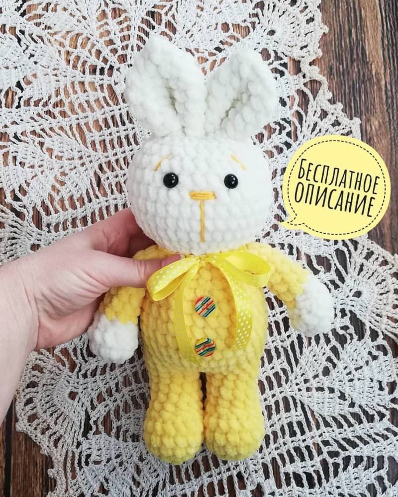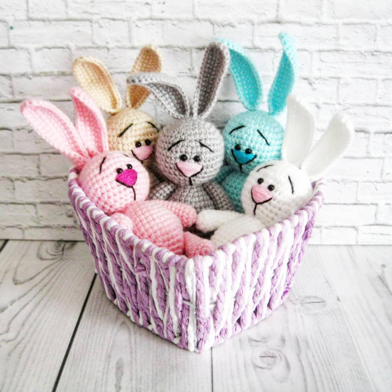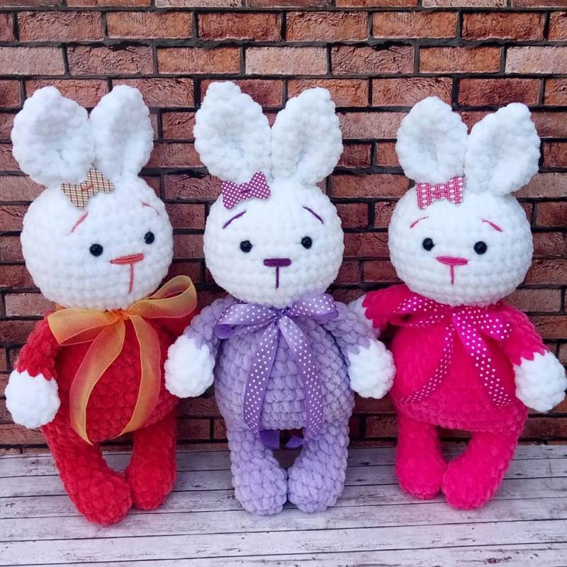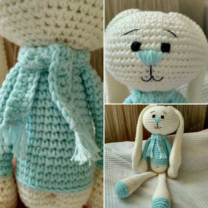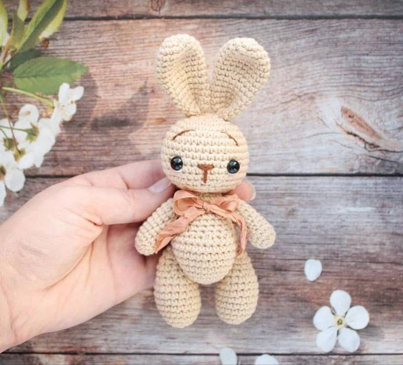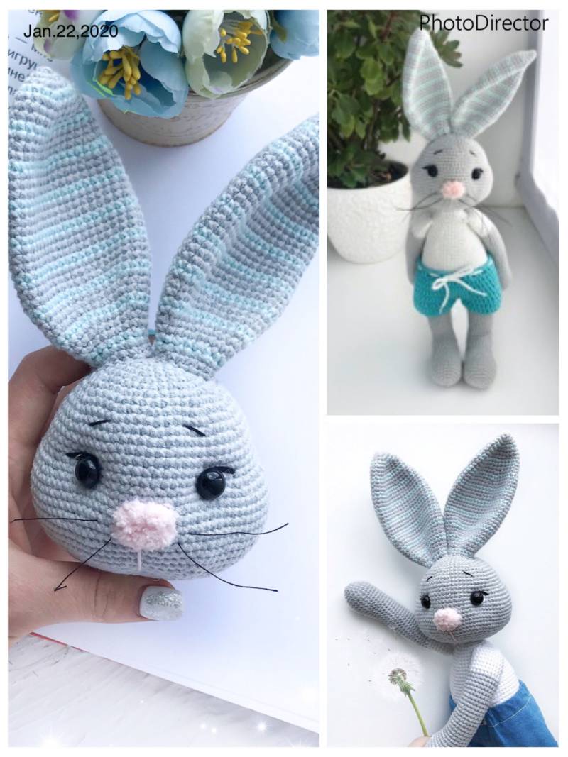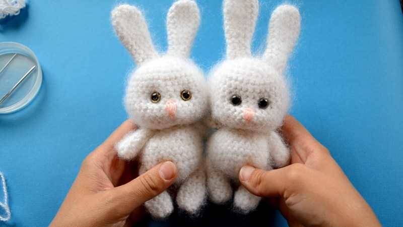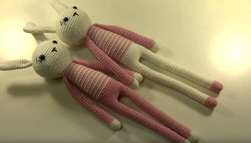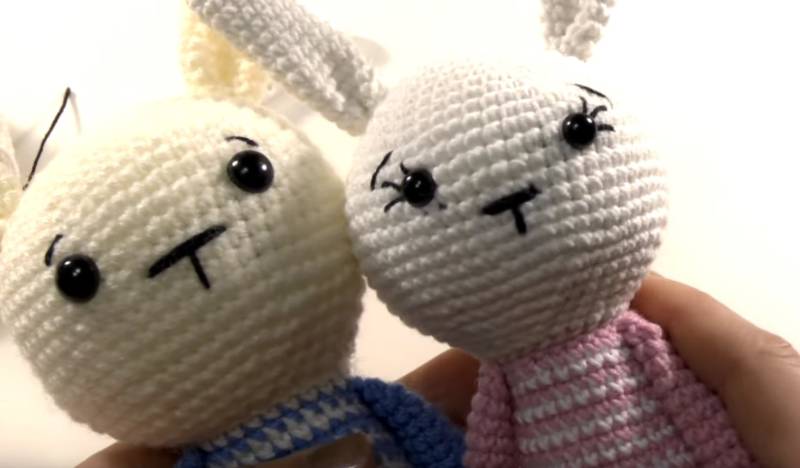 Зайчетата имат кръгла глава, изплетена в минималистичен стил, и удебелен торс.