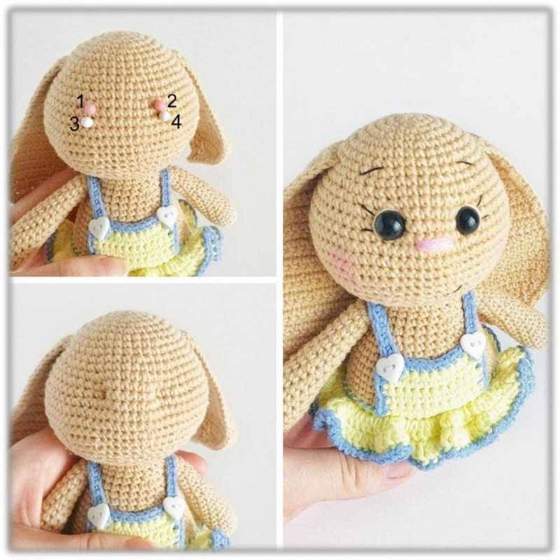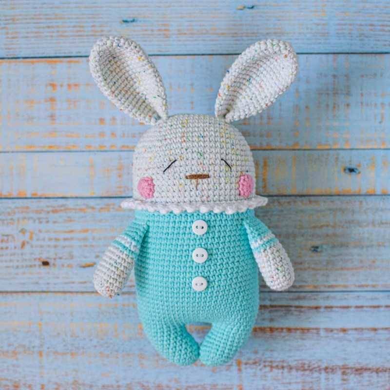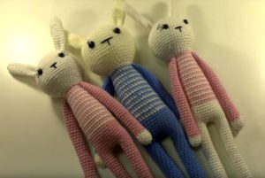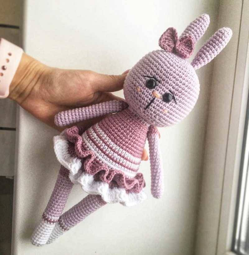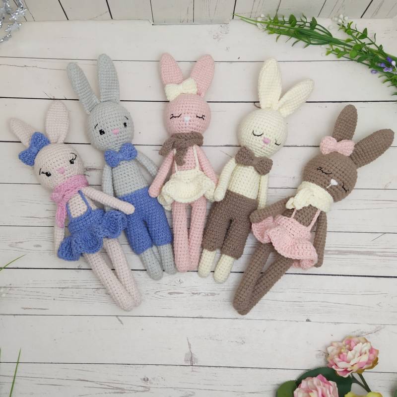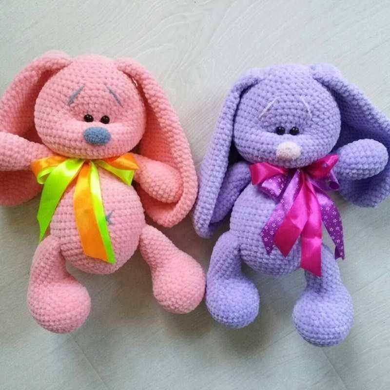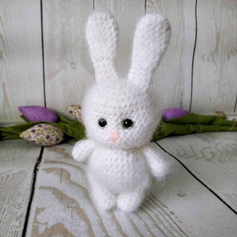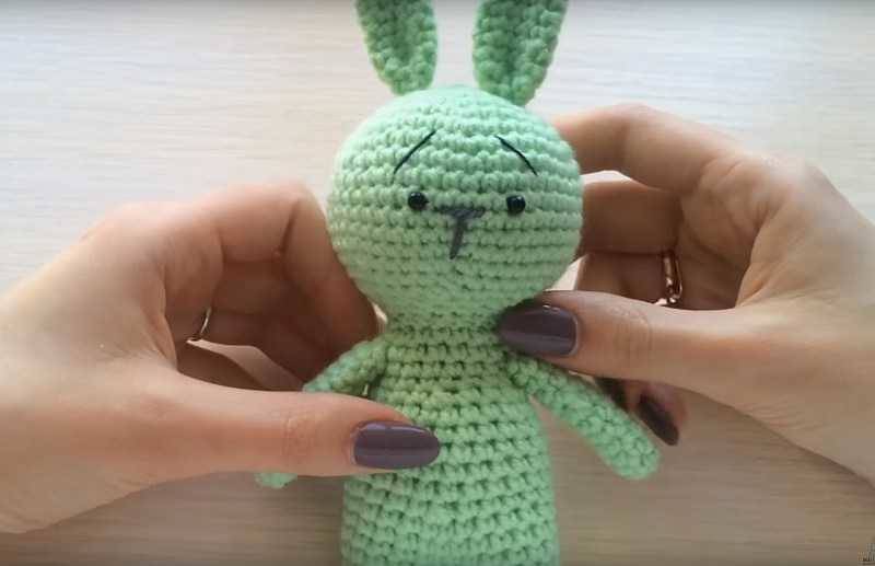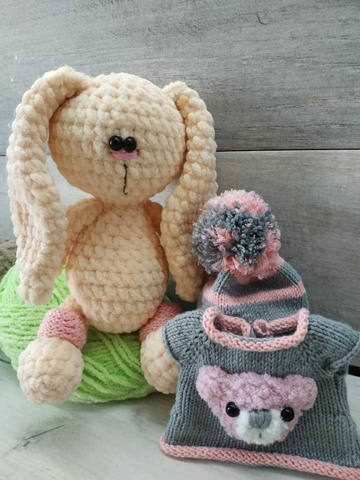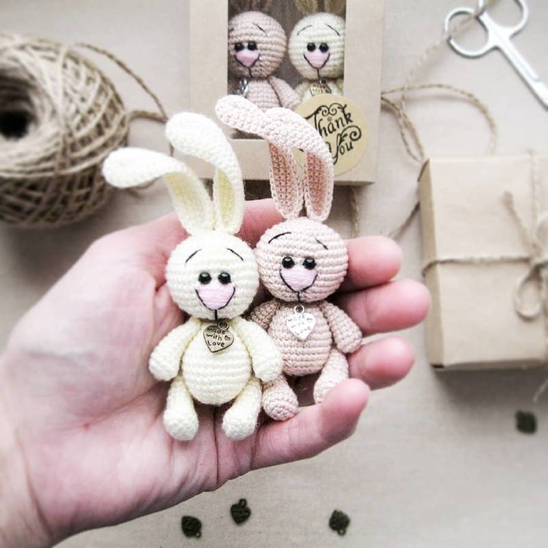Зайчетата имат кръгла глава, изплетена в минималистичен стил, и удебелен торс.