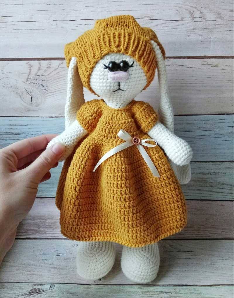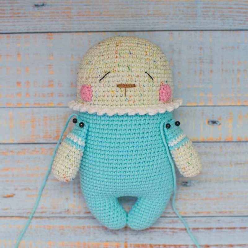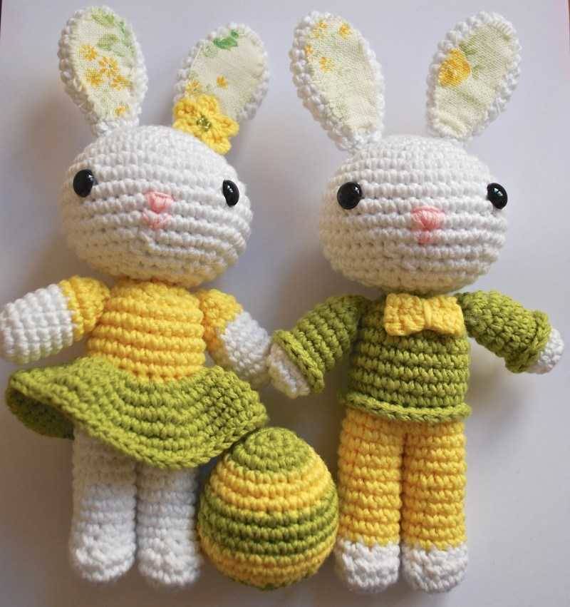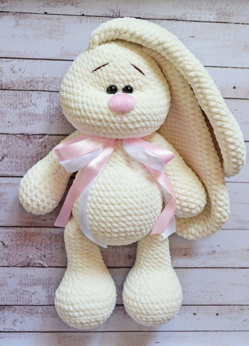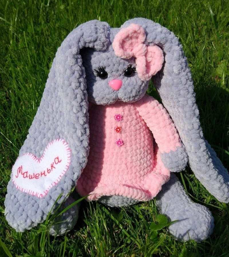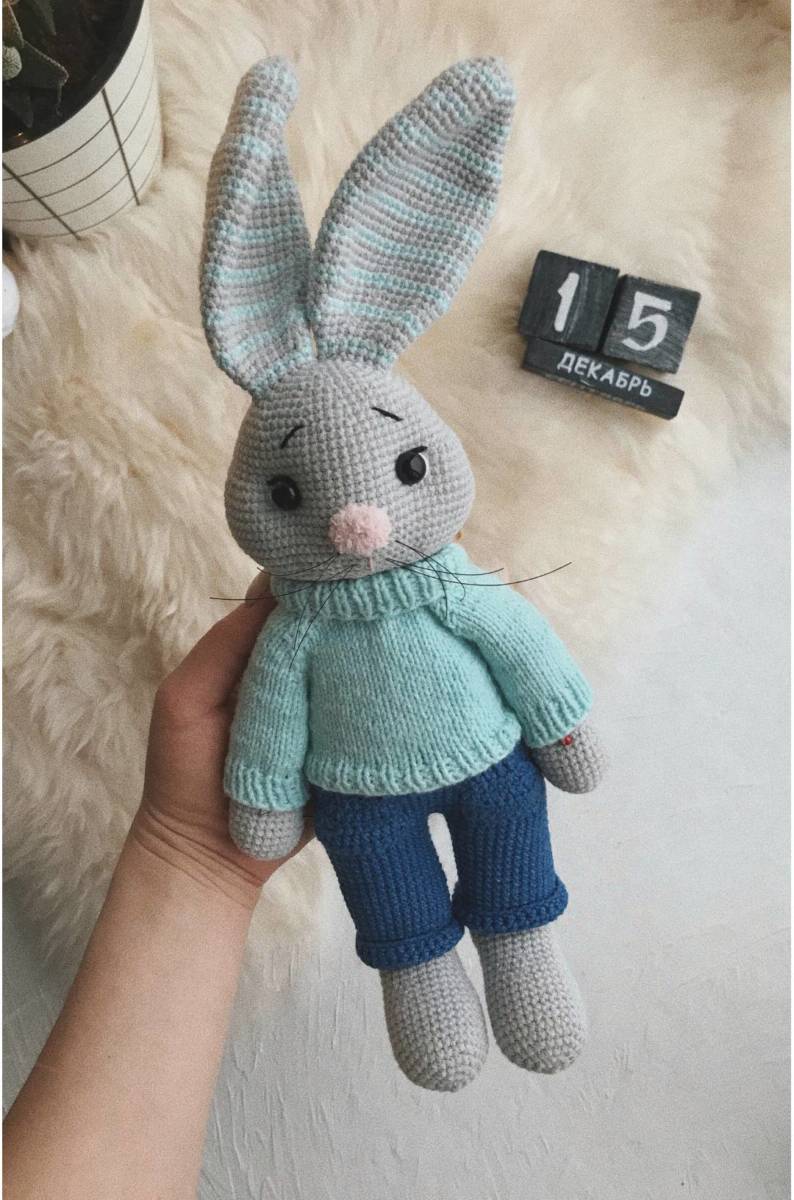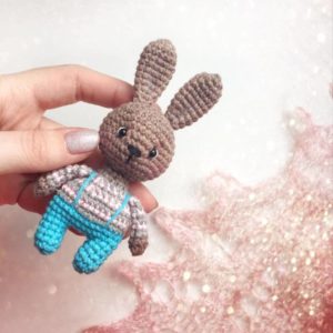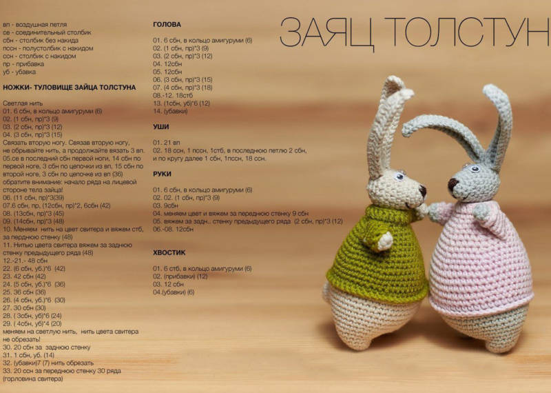 Зайчетата имат кръгла глава, изплетена в минималистичен стил, и удебелен торс.