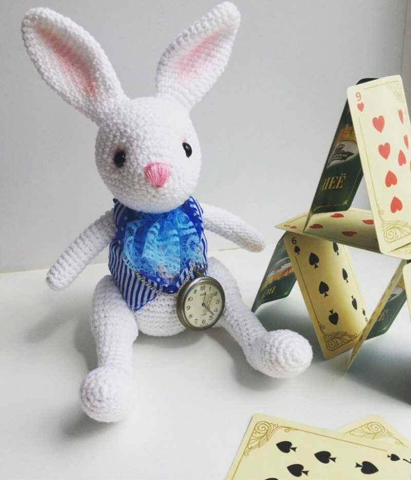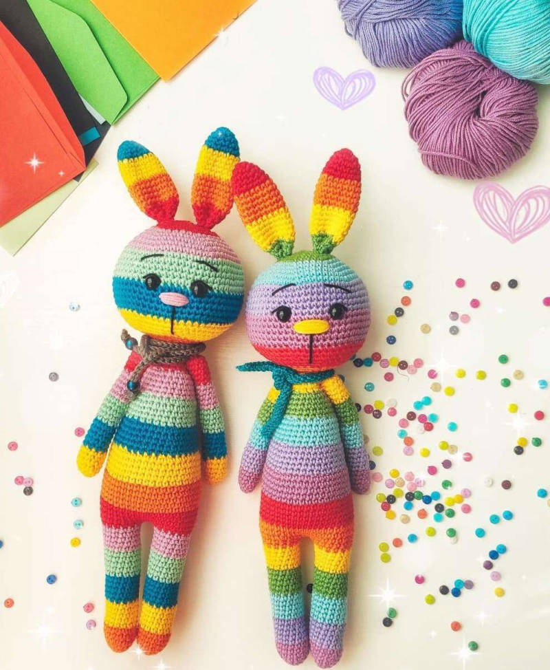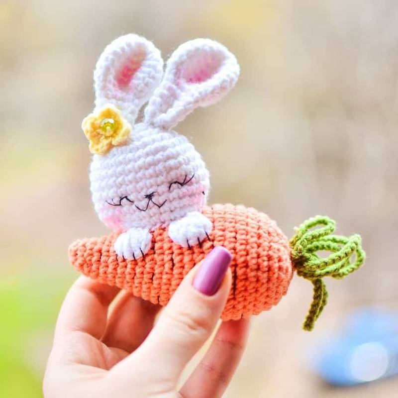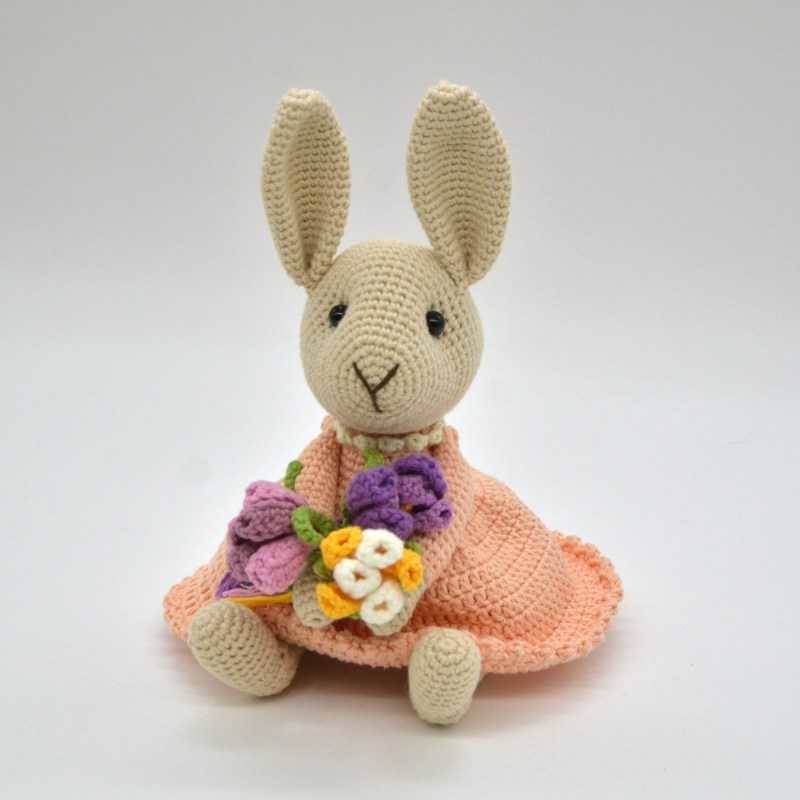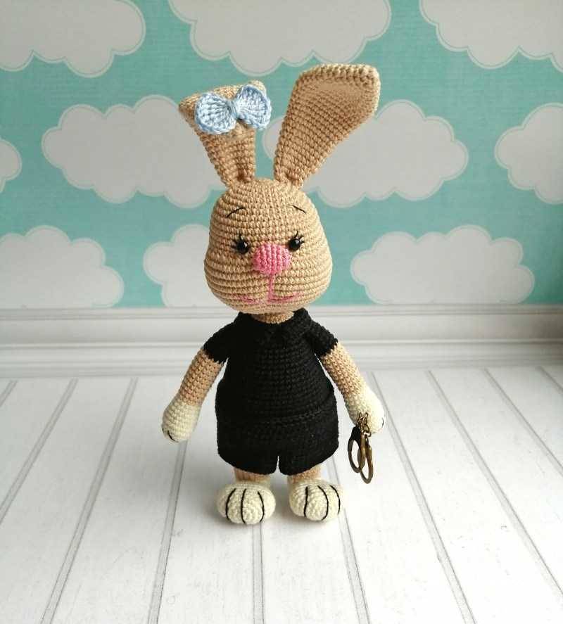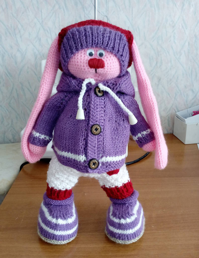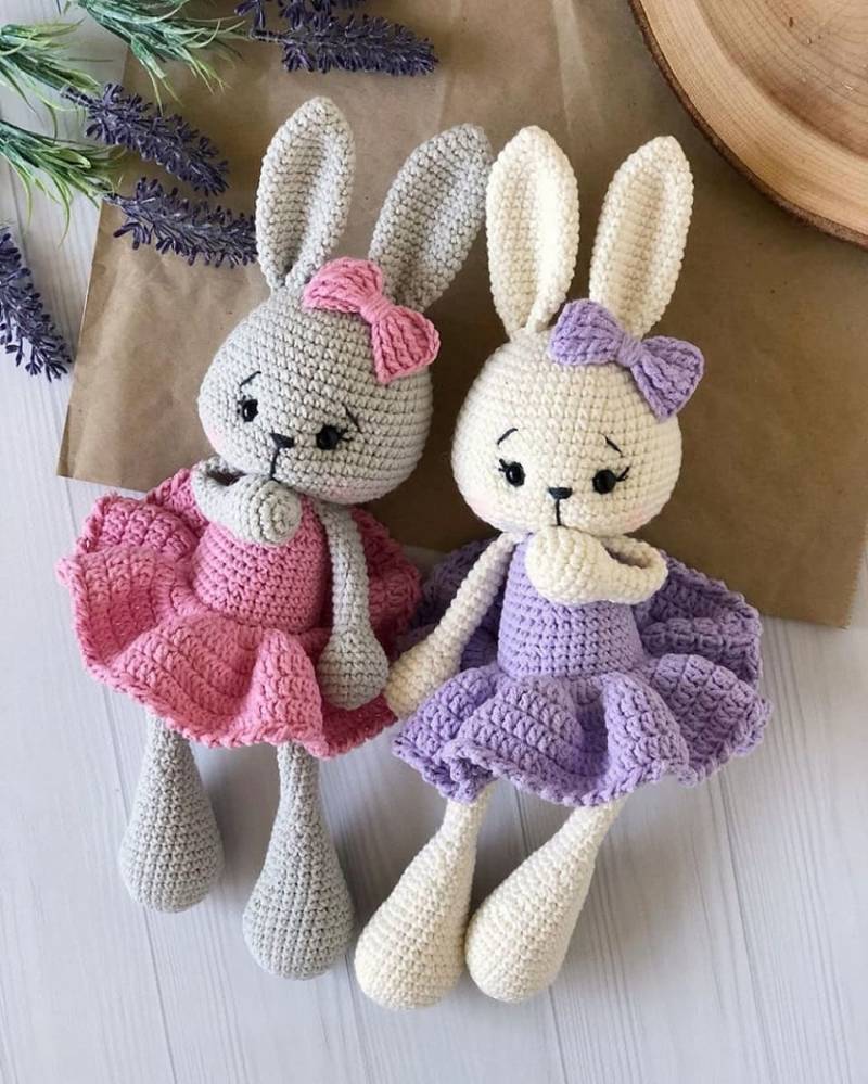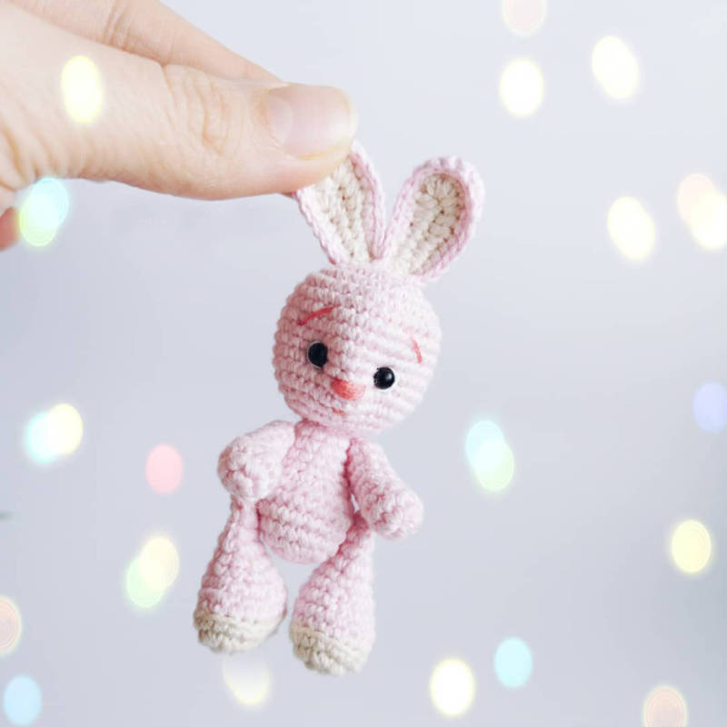 Зайчетата имат кръгла глава, изплетена в минималистичен стил, и удебелен торс.