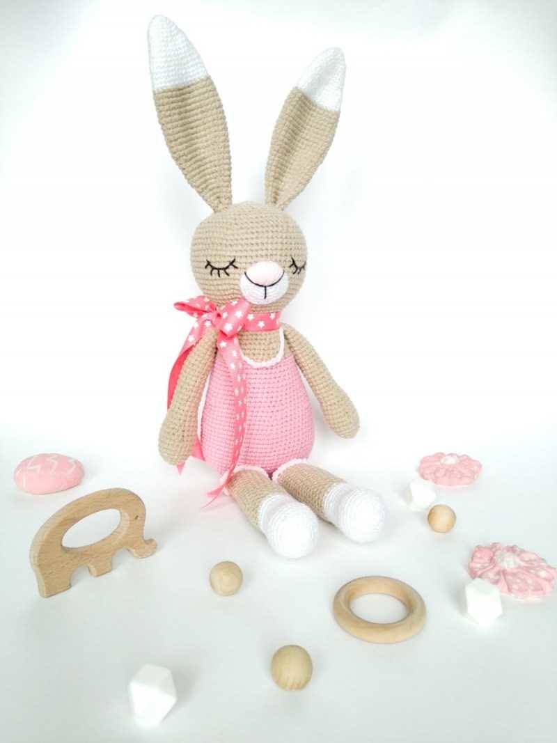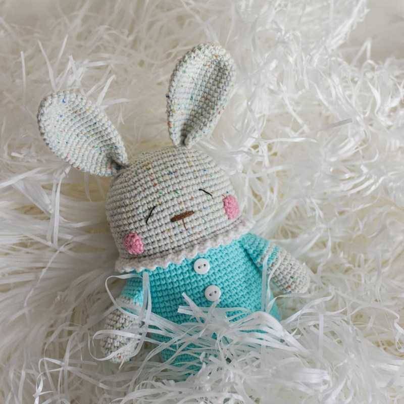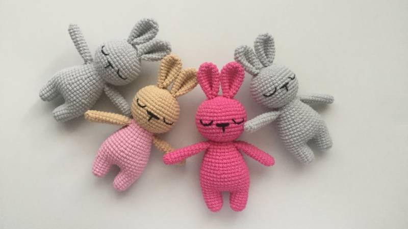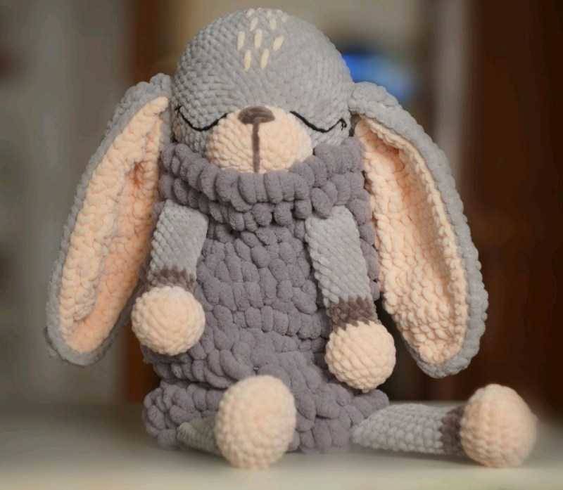Децата обичат да заспиват, прегърнали любимата си играчка, особено когато тя е изработена с любов от ръцете на роднина и любим човек. Специално за тази цел е измислено зайче с бродирани затворени очи.