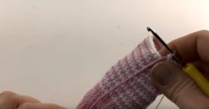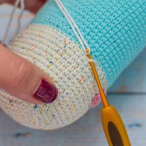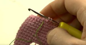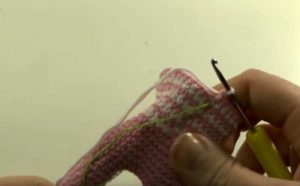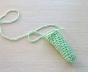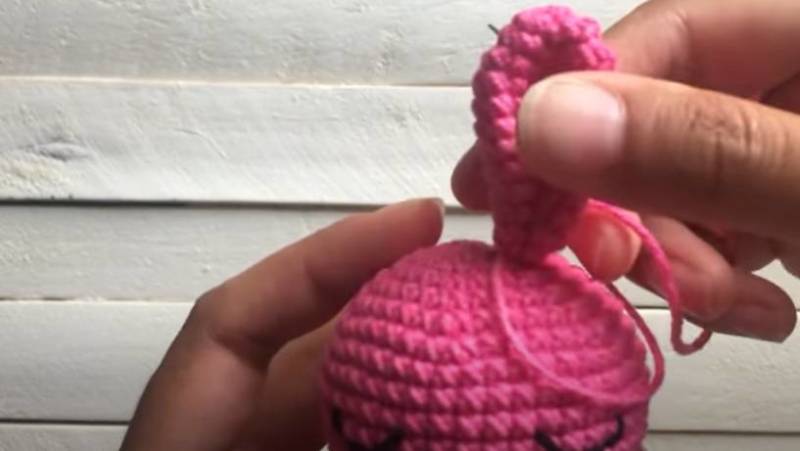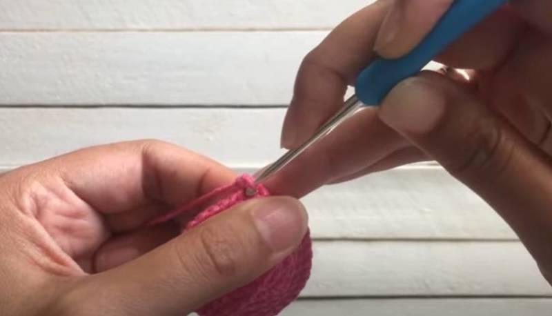 - Като отстранявате по 5 бримки на всеки ред до 21-ви ред, можете да напълните главата с пълнеж и да затегнете оставащите няколко бримки.