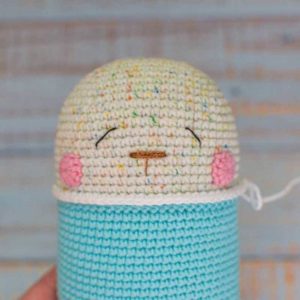 - Главата се плете отделно, под формата на топка, която след това се пълни плътно с вълна или фибри.