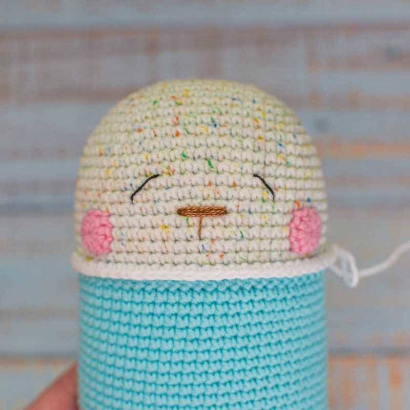 За да го направите, ще ви трябват около 50 грама мека прежда в светли цветове, които не предизвикват алергии при децата: