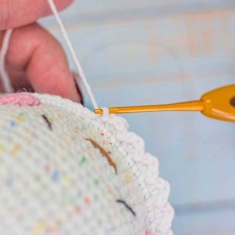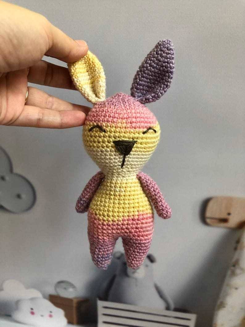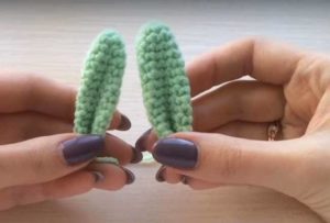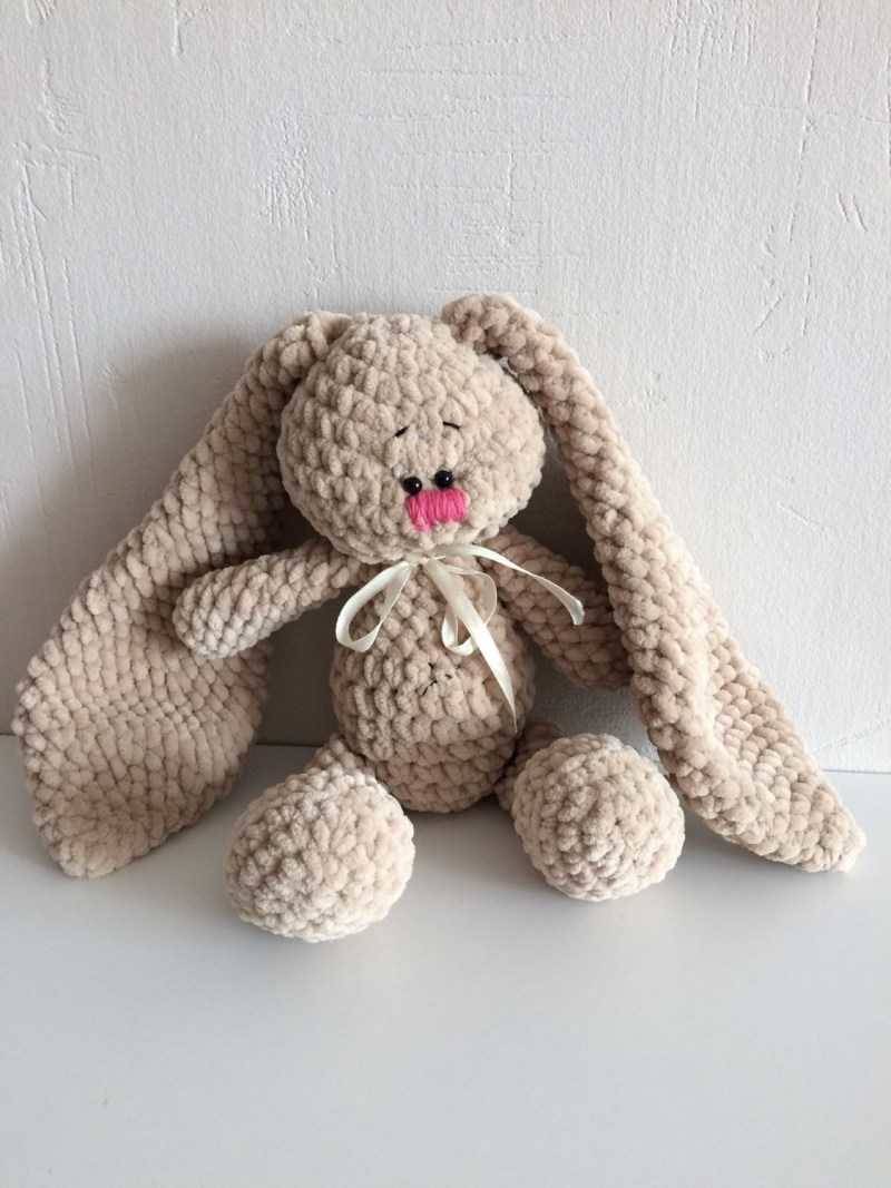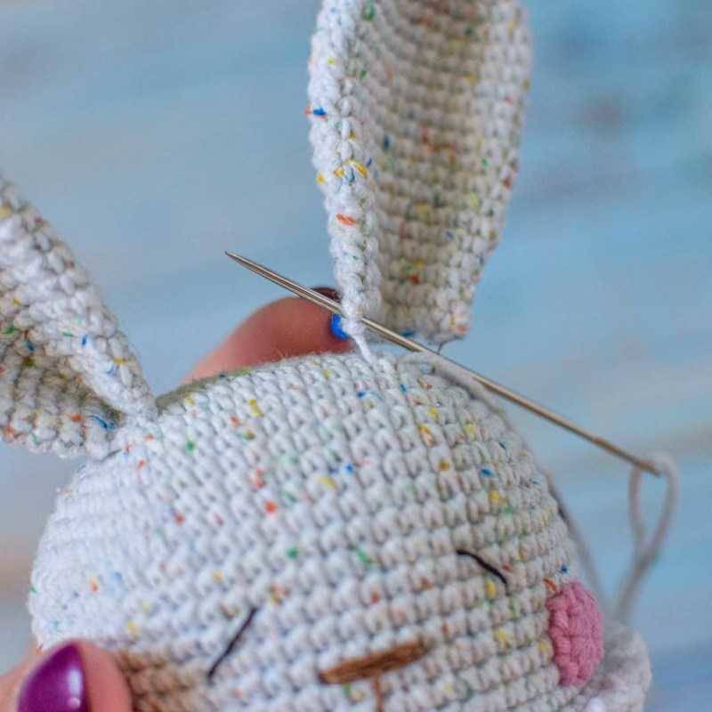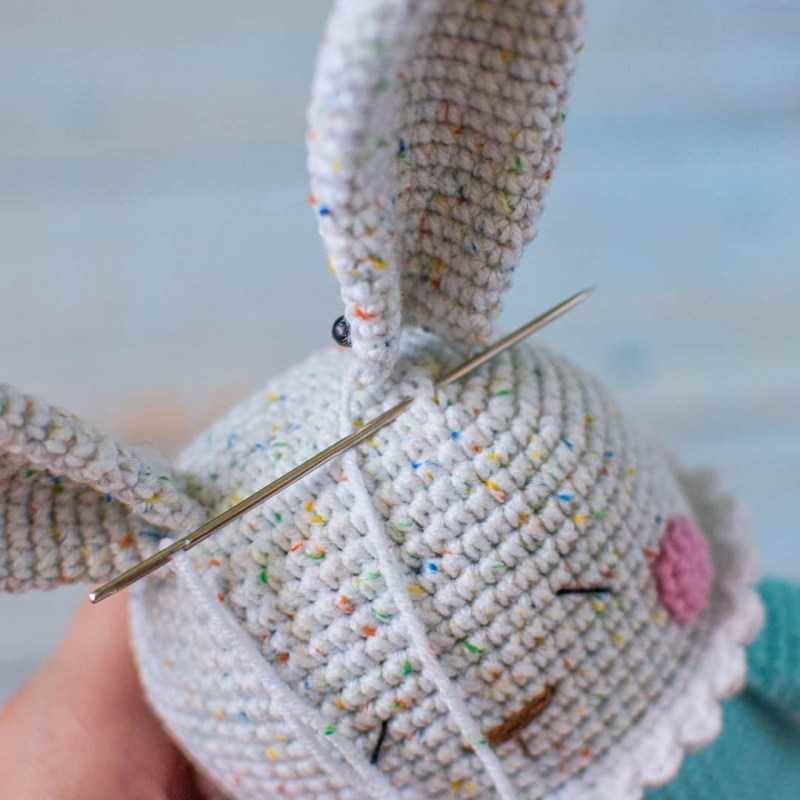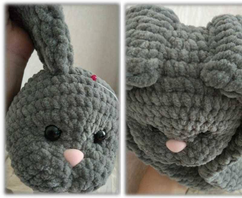 Ще получите кръгла глава на заек, към която трябва да изплетете останалите части, включително дългите уши.