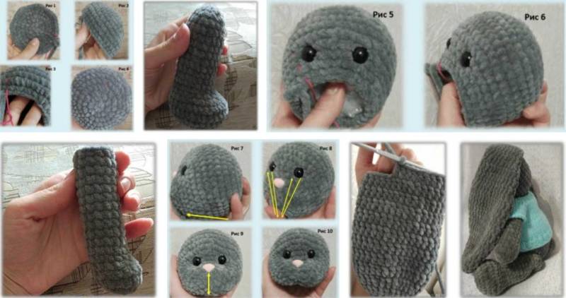 - Лапите и ушите могат да се изплетат отделно по познатите модели.