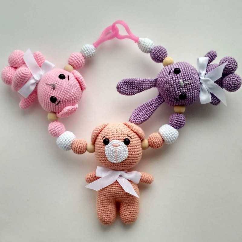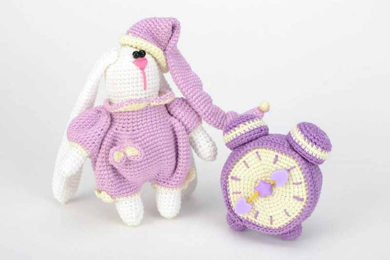 Плетените на една кука играчки се използват като играчки или декорация на интериора. Те са изработени под формата на фигури на животни и приказни герои от меки конци в различни цветове.