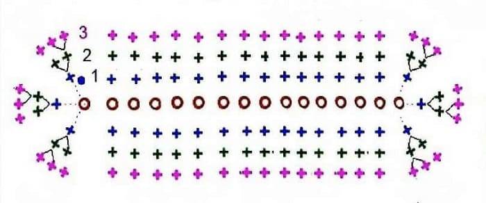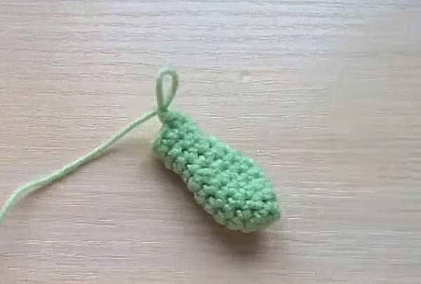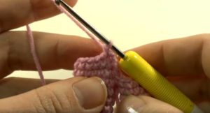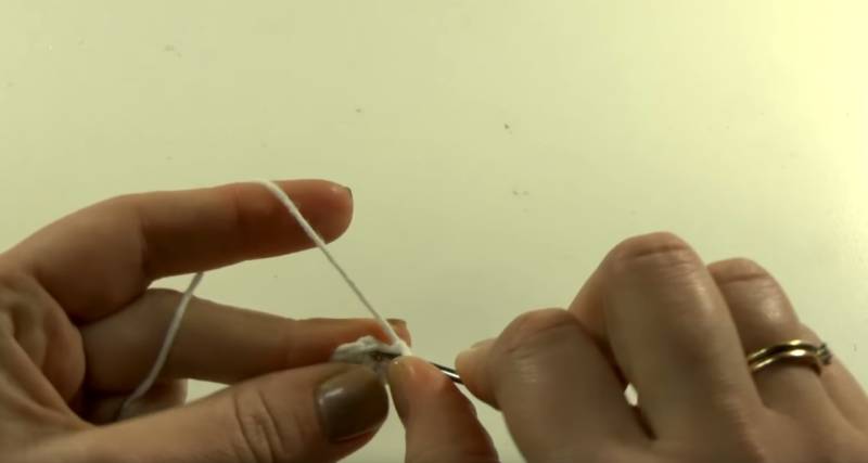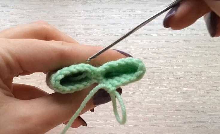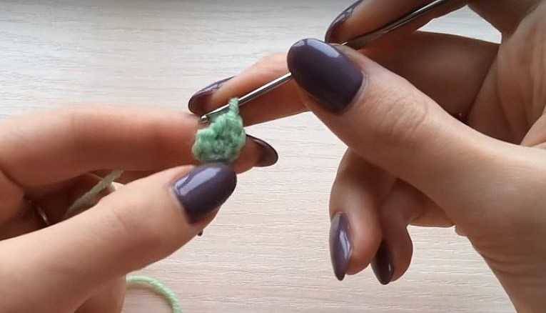 - Основата се затваря с 2 въздушни бримки, от които след това се плетат 4 обикновени колони, за да се получат общо 5 колони без връзки.