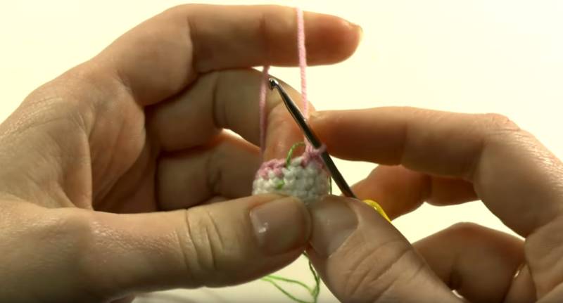 Редът на изпълнение на плетената на една кука играчка започва с плетенето на главата: