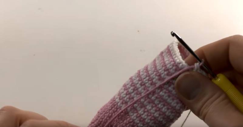 - От ред 2 нататък трябва да добавяте по 5 стъбла на всеки ред, включително на 9-ия. По време на плетенето на тази част трябва да имате 45 бримки.