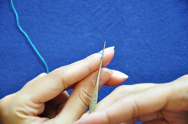 - Поставете мънисто на въдицата, направете капаче, като поставите краищата на въдицата от две противоположни страни. Закрепете със стегнат възел.
