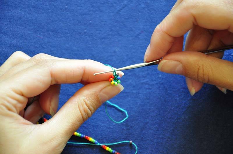 Ако сте начинаещи в плетенето на една кука с мъниста, трябва да се учите от малки парчета с прост модел.