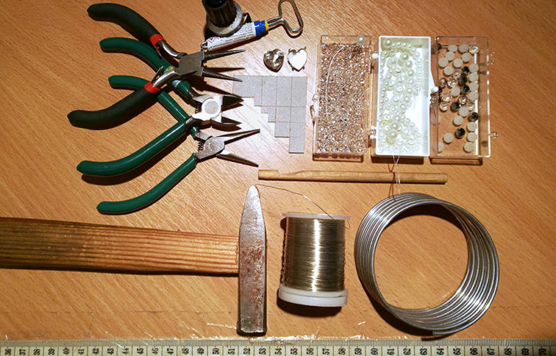Иглата, куката и приспособлението се избират в зависимост от вида на бижуто и избрания материал. Най-често се използват 10 см игла и кука № 1.