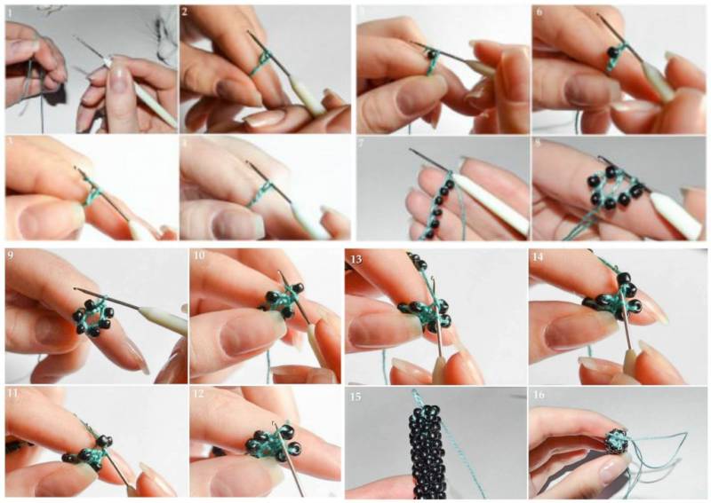 За да разберете техниката, опитайте се да направите наниз от мъниста с дължина 10-15 см.
