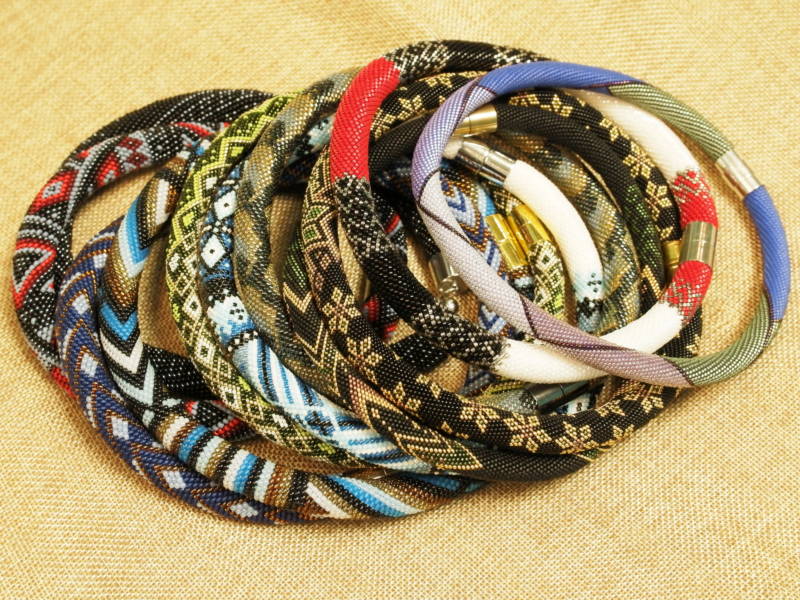 Експериментирайки с цвета, формата и техниката на тъкане, е възможно да се създадат изключително красиви, ексклузивни елементи за врата и гривни за носене на ежедневни или вечерни рокли.