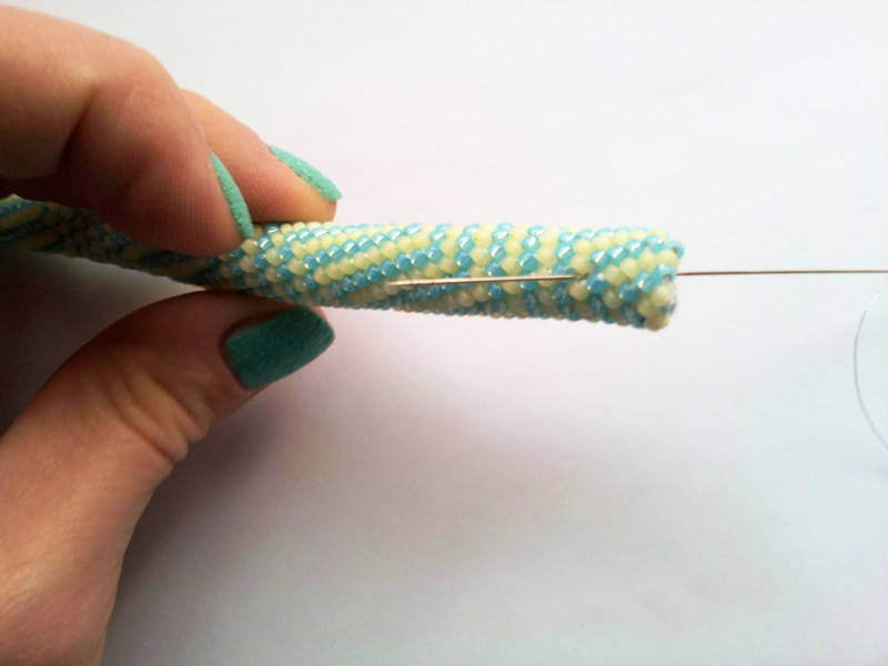 - Продължете да плетете по този начин, докато на работния конец не останат повече мъниста.