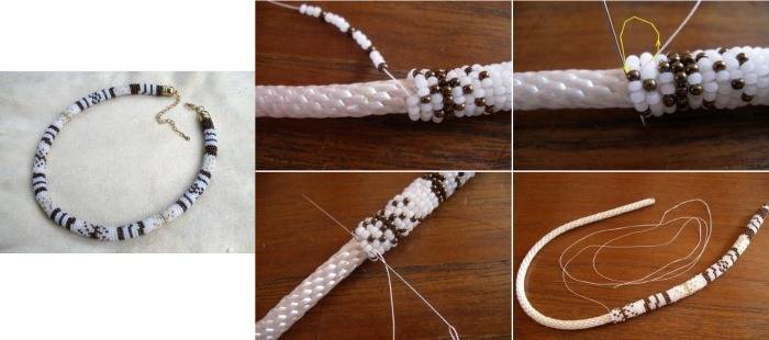 Това е куха връв, изплетена от мъниста, перли и стъклени перли.