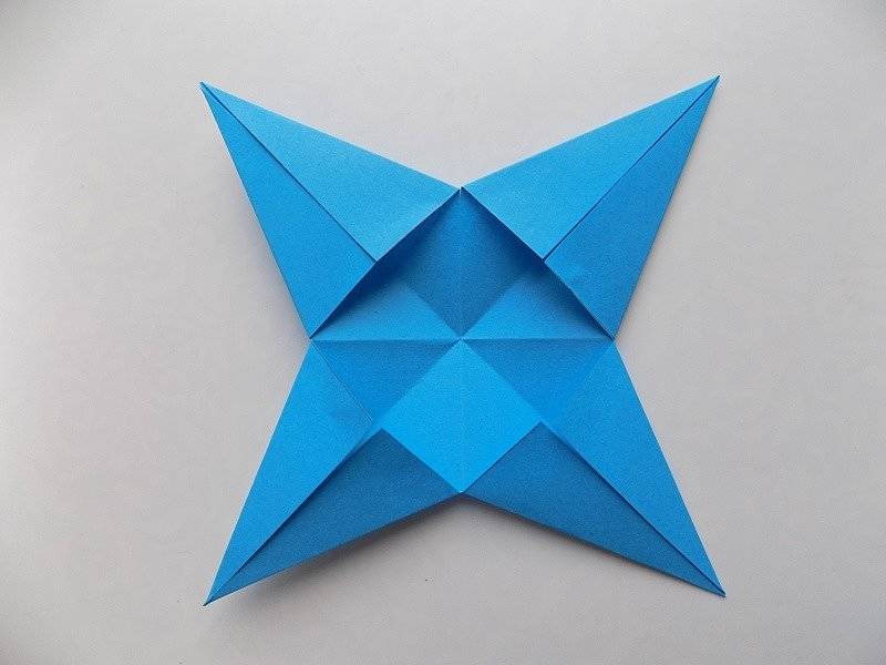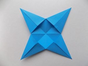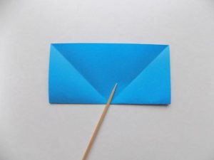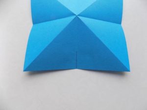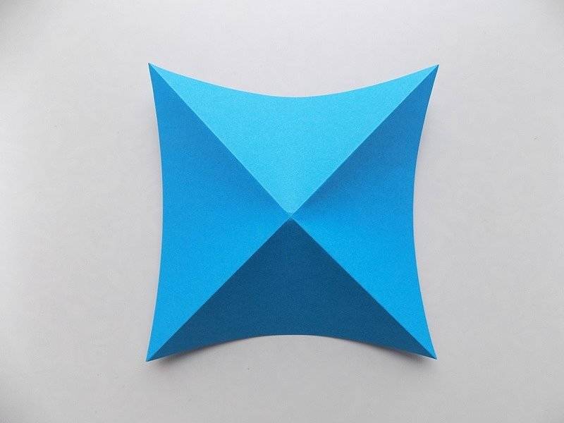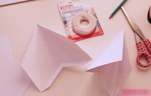 - Разгънете го и получената линия на прегъване огъне ръбовете на детайла от двете страни. Закрепете с лепило получения четириъгълник.