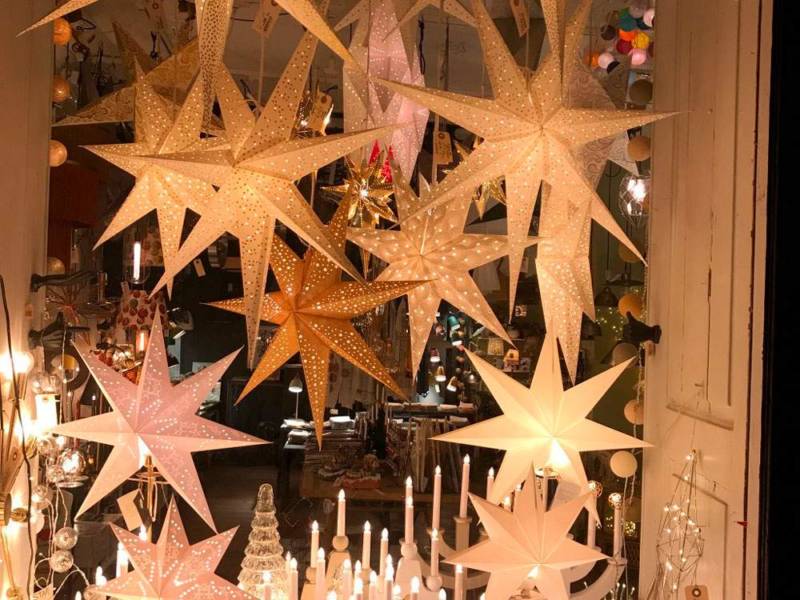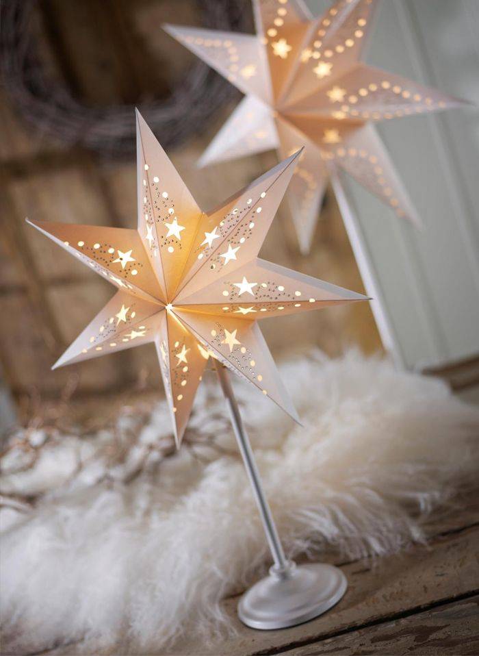 - Поставете гирлянда вътре, можете да го закрепите малко настрани с тиксо и да завършите двете звезди, така че жицата да минава през крачето за удобство. Сега можете да украсите елхата с основната украса и да включите гирляндата в контакта.