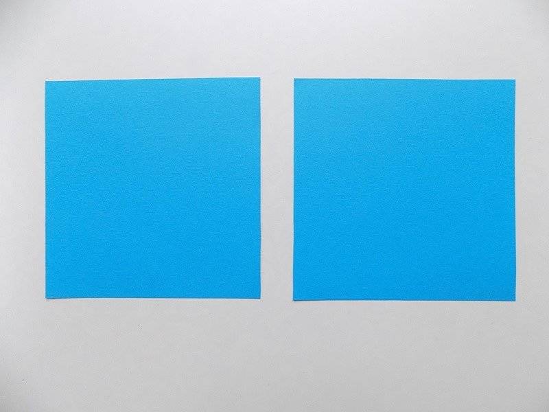 - Извадете два картонени квадрата, сгънете всеки от тях 2 пъти наполовина, а след това 2 пъти по диагонал.